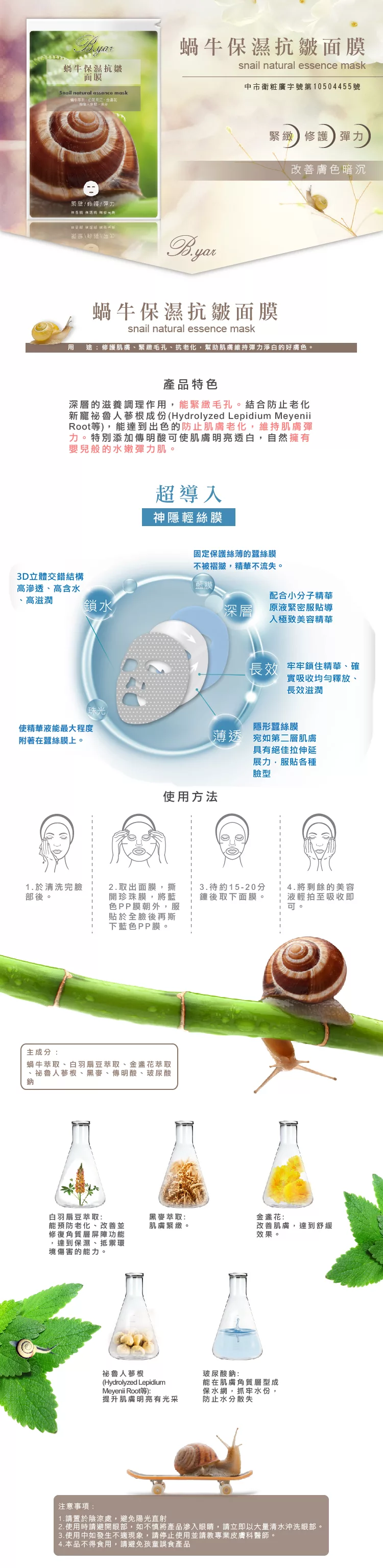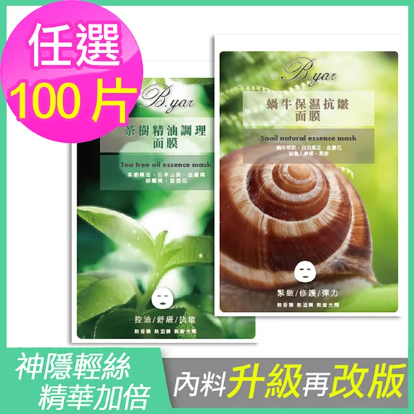 商品推薦:coni beauty B.yar 蝸牛保濕抗 皺-茶樹精油調理面膜 控油 緊緻 27g-片(任選100片)蝸牛保濕100片