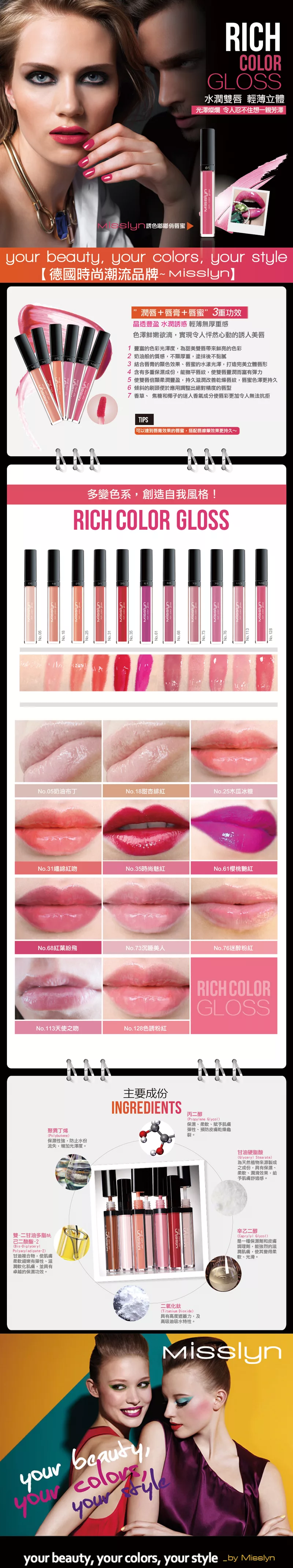 ★結合唇膏顯色效果、唇蜜水漾光澤