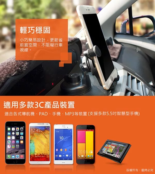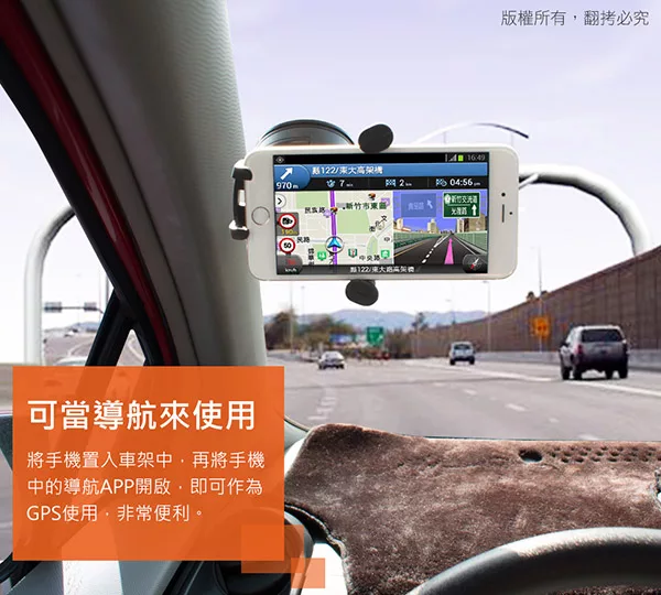 即可將手機或GPS夾上,7cm大支徑真空吸盤,吸力持久,穩固耐用