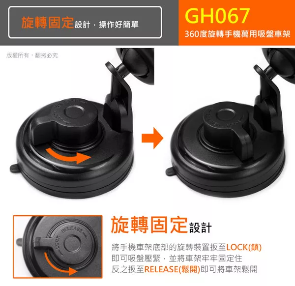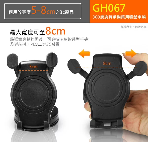 商品推薦:GH067 360度旋轉手機萬用吸盤車架
