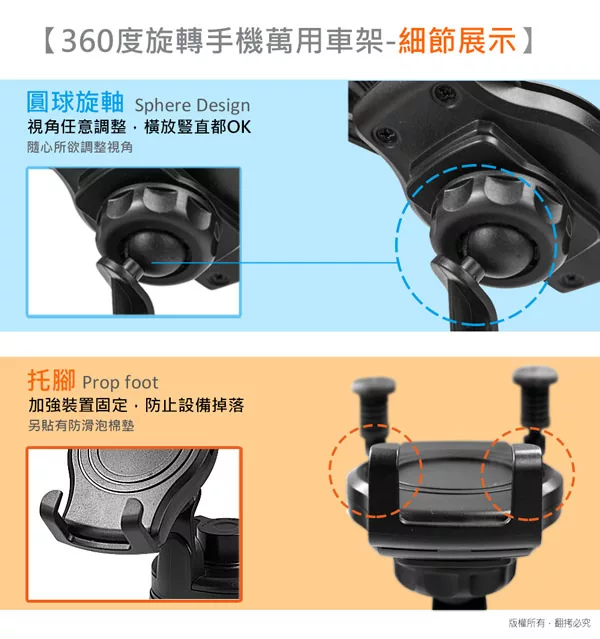 吸盤式車架設計,輕巧好攜帶,超穩固吸盤能穩定不晃動