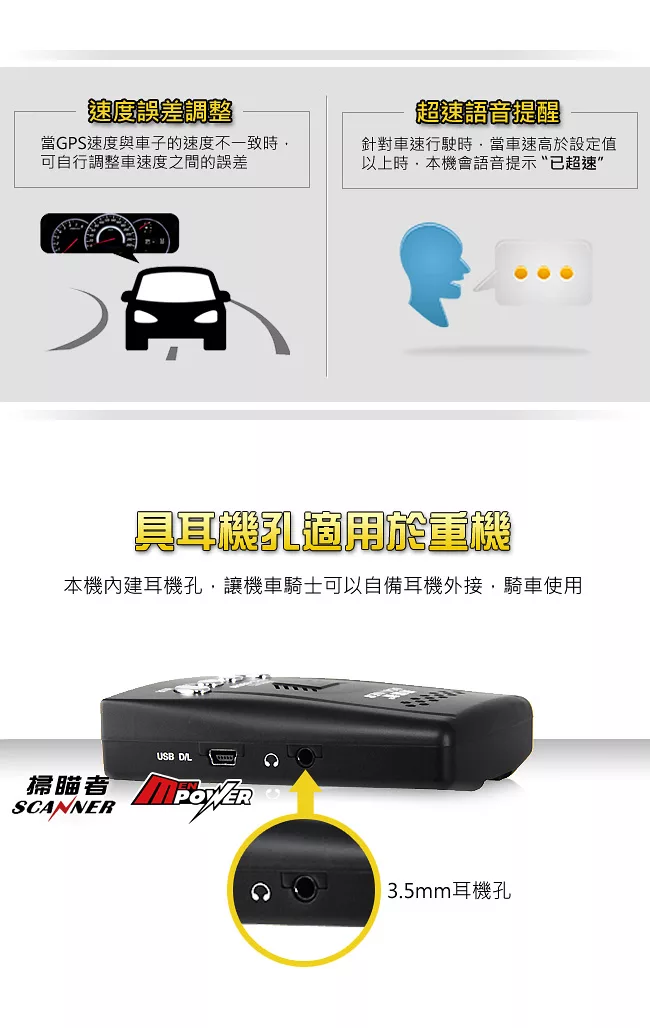 掃瞄者 GPS-880W 衛星定位道路安全警示測速器