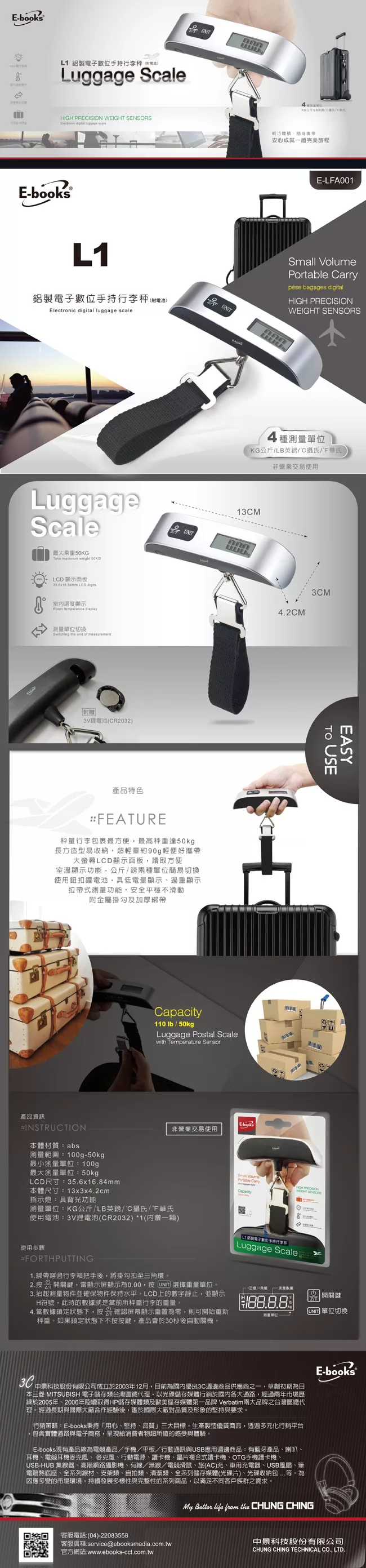 商品推薦:E-books L1 鋁製電子數位手持行李秤-附電池銀